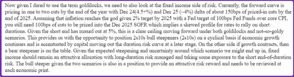 The initial macro thesis that was posed a few weeks ago was that we would see a gradual bull-steepening of US rates over the next few quarters while rate cuts start materializing into sustained but slower growth. This was clearly very wrong on timing but the mechanics driving that conclusion still apply today and can be worth revisiting.