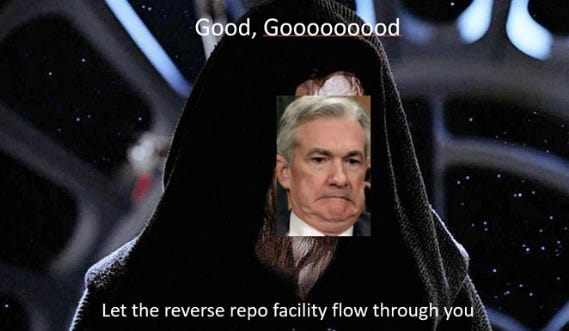 The issue with QT and QE is that the magnitude of the impact on the economy is unknown especially since its impact can be altered by fiscal policy. With QE for example, there is a point where so much cash has been added to the system that rates on the short end go to zero and eventually flip negative. To solve the magnitude problem organically, the overnight reverse repo facility allows market participants to give money back to the Fed at a set award rate (since June 2021 moves in lockstep with rate hikes/cuts and was 0% prior) instead of absorbing lower yields. The RRP behaves like a sponge for excess liquidity and effectively reduces the quantity of dollars that would otherwise be circulating in the monetary base putting a floor on yields. By definition; the RRP has no credit risk and no duration risk; which implicitly targets money market funds that have a goal of being completely risk-free across duration and credit and redeemable at par. The RRP is by construction the best investment for MMF’s above Treasuries given an equal yield.