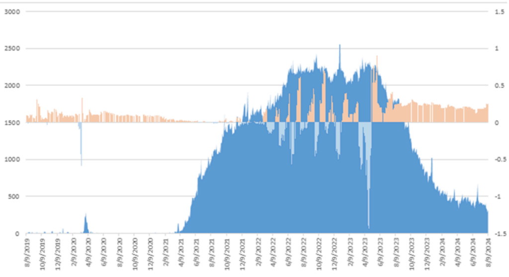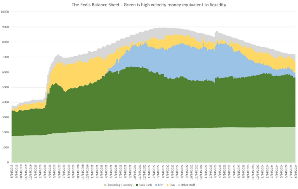 Currently, there is no debt ceiling on the national credit card until the start of next year, however, Supreme Leader Yellen dictated that she will maintain the same balance through this period. When the unlimited credit card runs out, the treasury will be obliged to eat into its cash reserves reducing the TGA and directly injecting liquidity into the real economy (and indirectly into the pockets of the elite with rising asset valuations). Neither Trump nor Kamala are keen on reducing spending, hence this process should be fairly speedy and supportive to asset prices in the first half of 2025. We can moreover predict the next haggling over the debt ceiling to happen in Q2 of 2025; should be fun TV! In the meantime Yellen will do her part to prop up the US economy by stimulating consumer spending, she probably singlehandedly helped raise retail sales by 1% above all estimates this glorious Aug 15th.