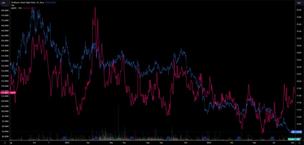 Relatively high bond vol in conjunction with the current consensus pricing of the steepner trade on 2s10s and pessimistic view on the economy makes this position broadly unattractive to put on. The primary two arguments I see to put back on the long on 2s10s is that now that the curve has uninverted, there will be a natural shift of capital towards the long end, putting a natural bid on it and providing us with a limited downside to the position barring any change in Fed cutting trajectory. Moreover, this trade, although already richly priced given the recessionary view that bonds are showing, offers a good hedge for worse-than-expected economic prints where this position could see another Aug 5th style of risk aversion pricing, which is where this trade shines.
