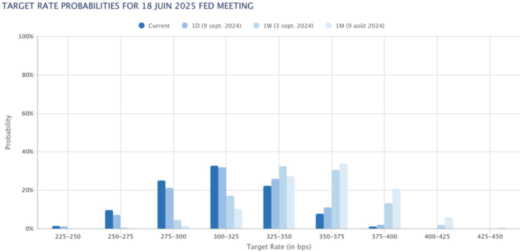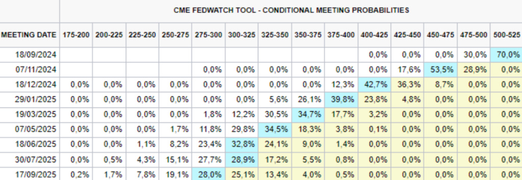 The market broadly interpreted the data to imply a 25bps cut (70% chance) over 50bps at the next Fed policy meeting. Here are some charts that provide context as to the market reaction: