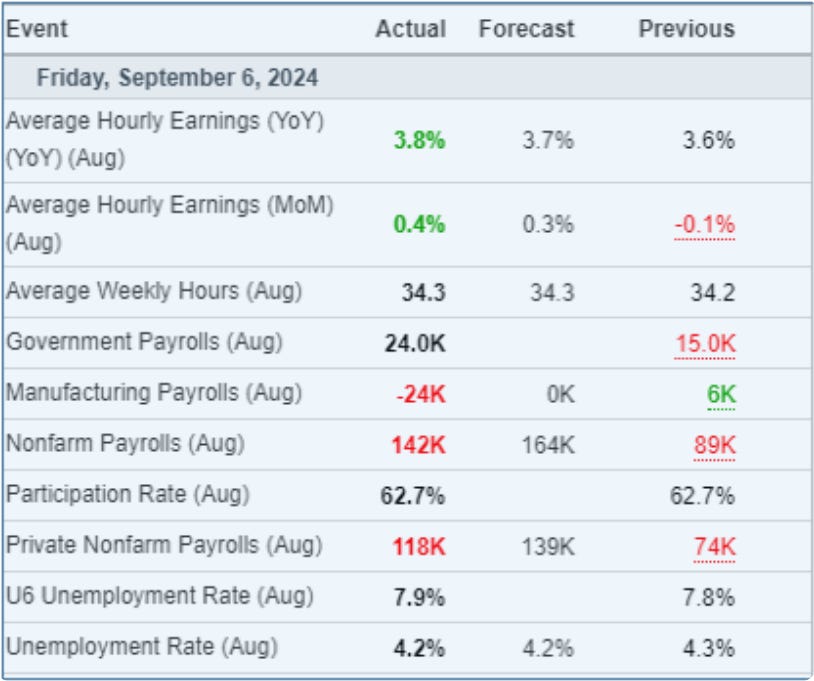 Looking at the mixed signals from Friday Sept 6’th, employment figures: