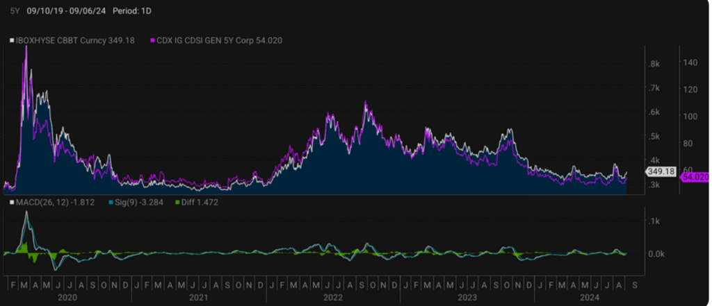 Making a quick parenthesis away from rates, I find it somewhat perplexing that credit spreads have not widened through August and have persisted their downward, starting in Q3 of 2022.